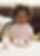 Smiling child with curly hair wearing a pink bib, sitting at a table with a pink dish of food and a cup.